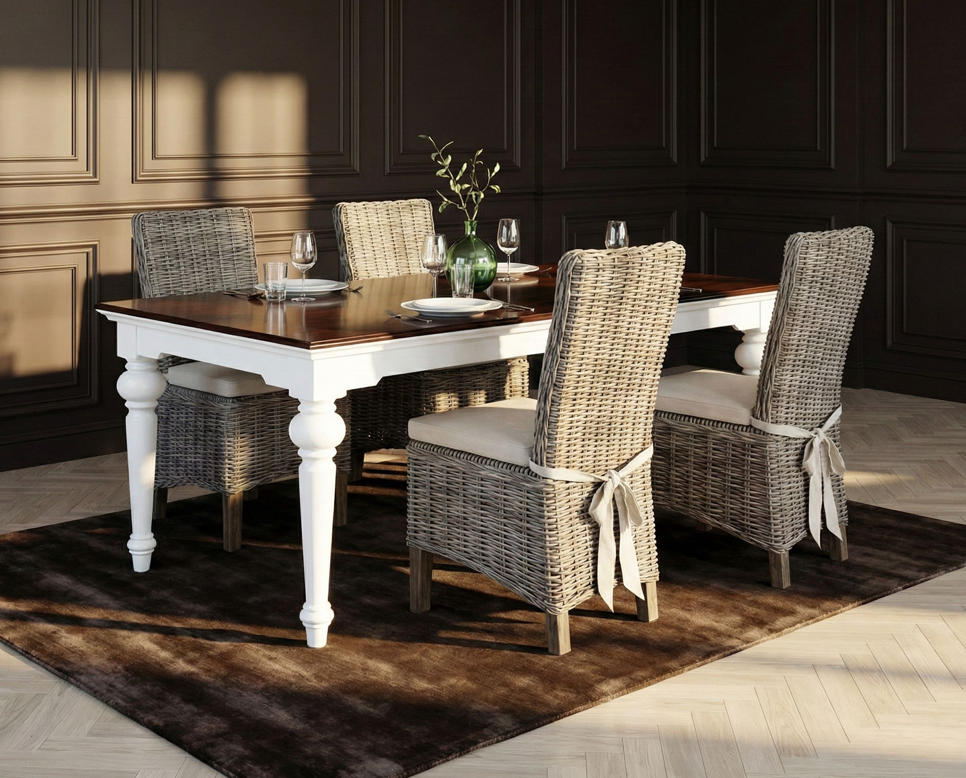 Provence Dining Table 240cm - White With Dark Brown Top